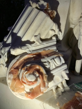 Nella mostra intitolata rå roa, che unisce le parole rå (in svedese “grezzo”) e roa (in ladino della Val Gardena, “ghiaione”), vengono affrontati proprio questi temi. Le opere appaiono grezze e primordiali, ma come i massi nei ghiaioni non trovano mai quiete e, attraverso un cambiamento continuo, trasformano le tracce del passato in nuove forme.