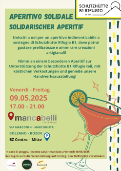 Unisciti a noi per un aperitivo indimenticabile a sostegno di Schutzhütte Rifugio B1, dove potrai gustare prelibatezze culinarie e ammirare creazioni artigianali!