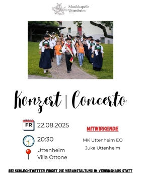 La banda musicale di Villa Ottone EO Vi invita cordialmente, insieme alla nostra banda giovanile, al concerto serale a Villa Ottone! Vi aspetta un programma musicale vario in un’atmosfera accogliente.