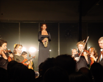 14 settembre 2002: Marina Abramovic si esibisce nel capannone delle lavanderie ex-Bolognini a Bressanone. Una performance folgorante tanto quanto la sua genesi, ovvero l’incontro con il compositore Jorge Lopez e con la musica contemporanea. In quella stessa sera i due artisti portarono sul palco due prime assolute. Dopo aver eseguito Vers La Flamme di Lopez, la Basel Sinfonietta rientra in scena: è il turno di The Composer di Marina Abramovic, che si colloca sul podio della direzione, al centro della scena. L’orchestra è immobile, solennemente pietrificata con i suoi strumenti. La voce registrata di Lopez, accompagnata dal video che in primo piano riprende la sua bocca, articola in un lungo monologo in tedesco il suo spartito, proprio quello dell’opera eseguita pochi minuti prima. Abramovic dirige l’orchestra, sguardo fisso, espressione ieratica. Invece della bacchetta, un boa. A rievocare quest’incredibile lavoro è la performer Kira O’Reilly nei panni di Abramovic, accompagnata da Klangforum Wien, nel contesto di un'altra opera di Lopez, cioè Blue Cliffs.