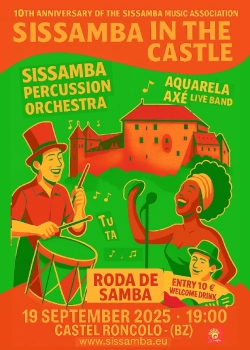 Venerdì 19 settembre 2025, l’Associazione Musicale Sissamba di Bolzano celebra il suo decimo anniversario con una serata imperdibile di musica e cultura brasiliana nel suggestivo Castel Roncolo, il “maniero illustrato” alle porte della città di Bolzano.