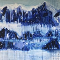 Bergwelten ist eine Serie von Werken, die auf der gleichen Grundlage wie das übrige Oeuvre der Künstlerin aufbaut. Eine Reihe von Landschaftsbildern, die die Ausgrabungsarbeit, das Durchdringen verschiedener Schichten betonen, um einen oder mehrere Kerne zu finden.
