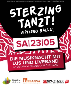 L'evento, già affermato da diversi anni nel sud della Germania, torna a Vipiteno dopo il successo ottenuto in primavera 2025! Sabato 23 maggio 2026 si terrà a Vipiteno la serata musicale “Vipiteno balla!”. Vari DJ dei generi anni '80, '90 e 2000, techno, techno melodica, trance, house, oldies but goldies, charts, après-ski e party hits e una band dal vivo si esibiranno in vari locali di Vipiteno dalle 21.00 all'2.00. L'ingresso è previsto a partire dalle 20.00. L’Aftershowparty ufficiale dopo lo spettacolo si terrà al Derby a partire dall'02.00. L'ingresso è gratuito con il braccialetto d'ingresso.