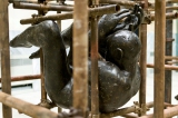 La galleria propone un’installazione dello scultore Lois Anvidalfarei, che mediante un complesso di tubi e giunti costruisce una gabbia, un campo chiuso. Un contenitore formato da un telaio per rinchiudervi sei figure di grandezza naturale in bronzo. Le figure sono nude, dotate di un’intensa presenza corporea e sono disposte in maniera inconsueta,tragica, spiazzante, intrappolate ed adagiate in posture sofferenti. Il visitatore, entrando nella galleria diventa parte attiva, ne diventa il rappresentante, ma anche elemento costitutivo e inscindibile di una dimensione limitata e condizionata dentro alla quale si svolge la coscienza, la consapevolezza di sè, della propria esistenza e delle proprie azioni. La condizione umana appunto.
